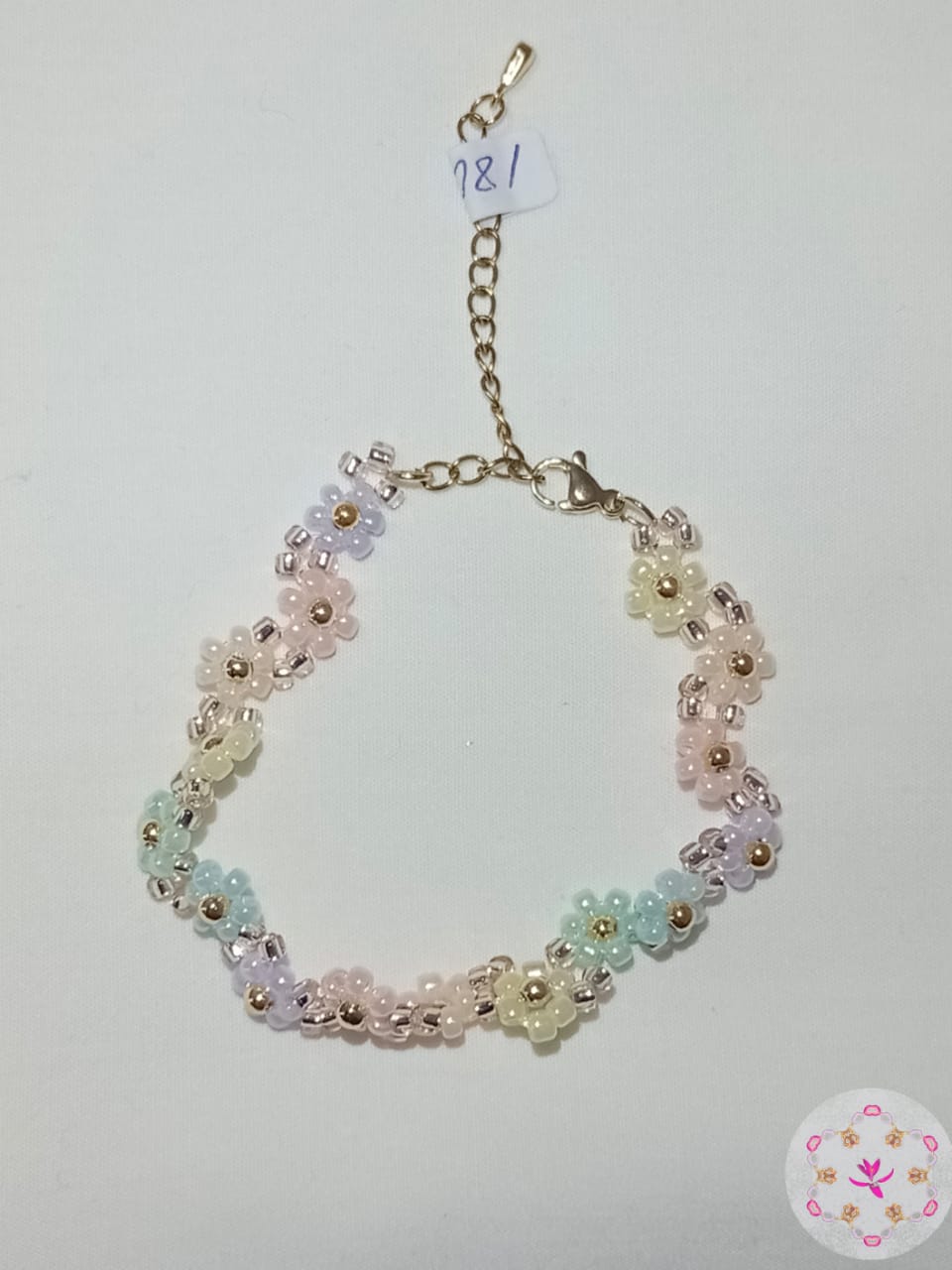 Pulsera chaquira rosa verde y morada