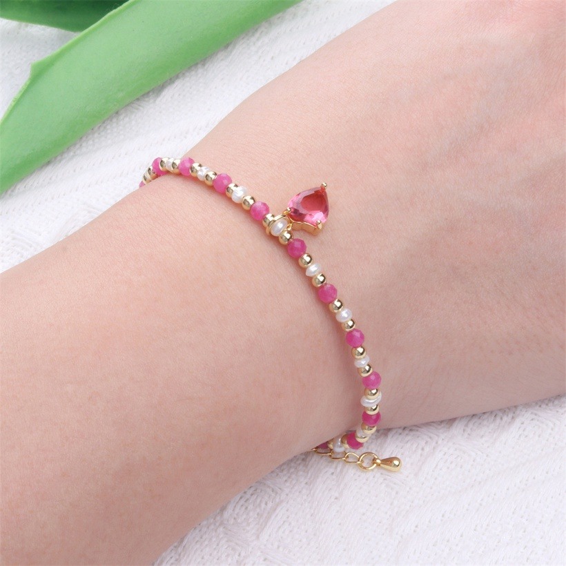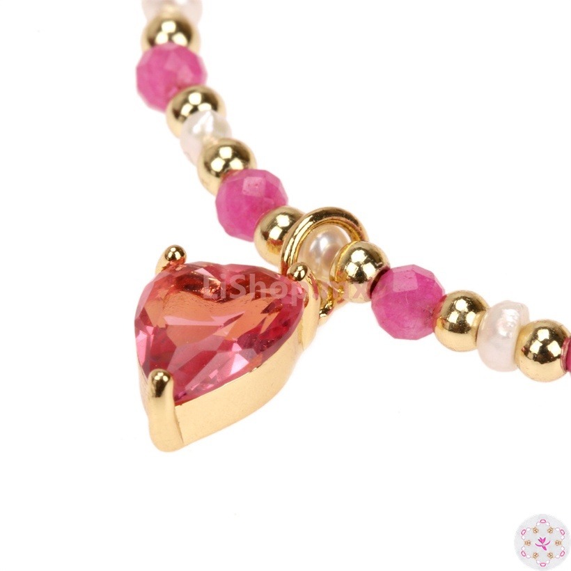 Fabricada con materiales de alta calidad, esta pulsera no solo es un accesorio encantador, sino también duradero. El corazón rosa brilla con suavidad, capturando la luz de una manera delicada y sutil.