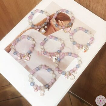 Pulsera Vidrio Con Cuentas Rosas Mujeres